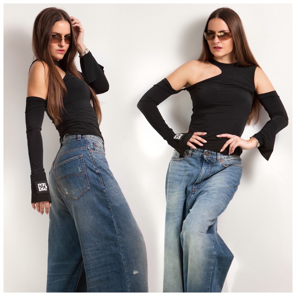 BUTTON SLEEVES TOP black