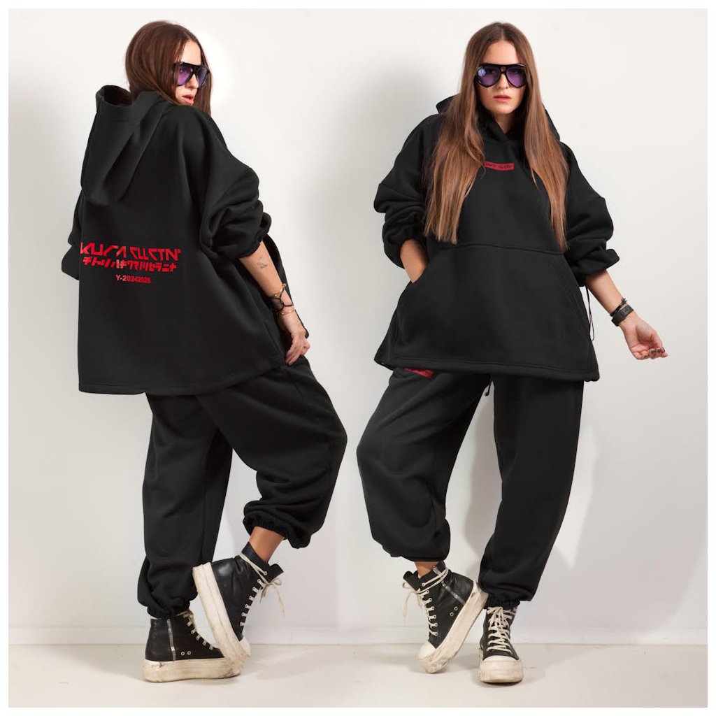 MEGA OVERSIZE SWEATPANTS black x red
