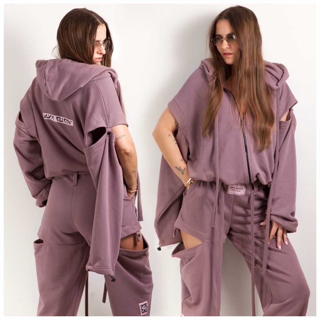 OPEN SLEEVES ZIP HOODIE mauve